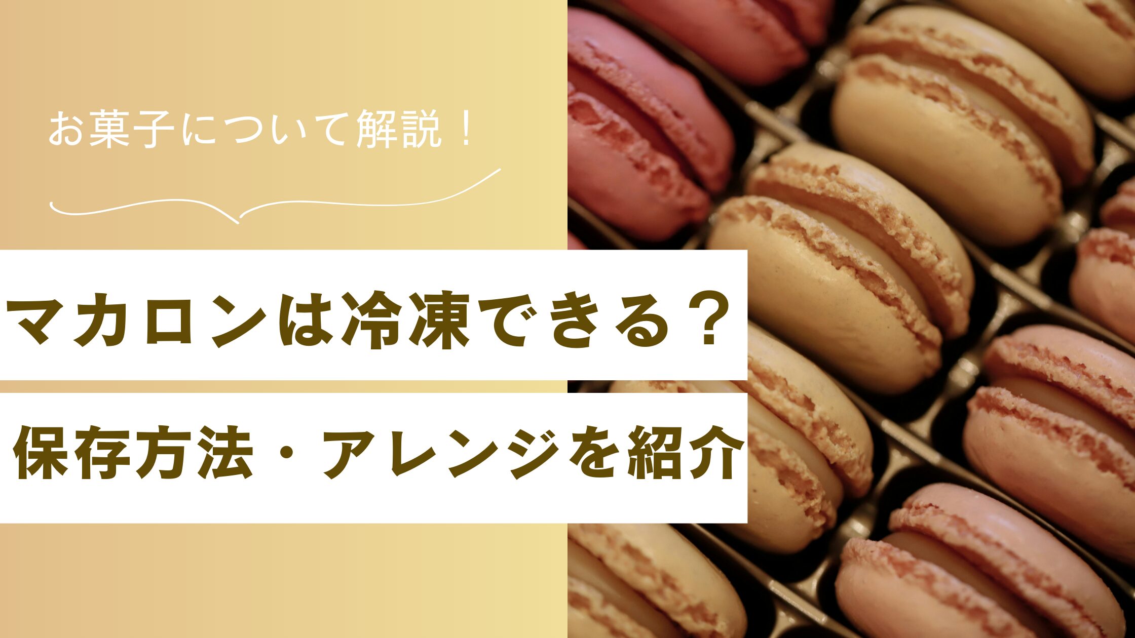 お菓子作りの基本 マカロンは冷凍できる?保存方法・解凍・アレンジも紹介 マカロンは冷凍保存できる?正しい保存方法や日持ちの目安、失敗しにくい解凍のコツ、余った時の簡単アレンジ方法までわかりやすく解説します。 2026.01.20 お菓子作りの基本その他
