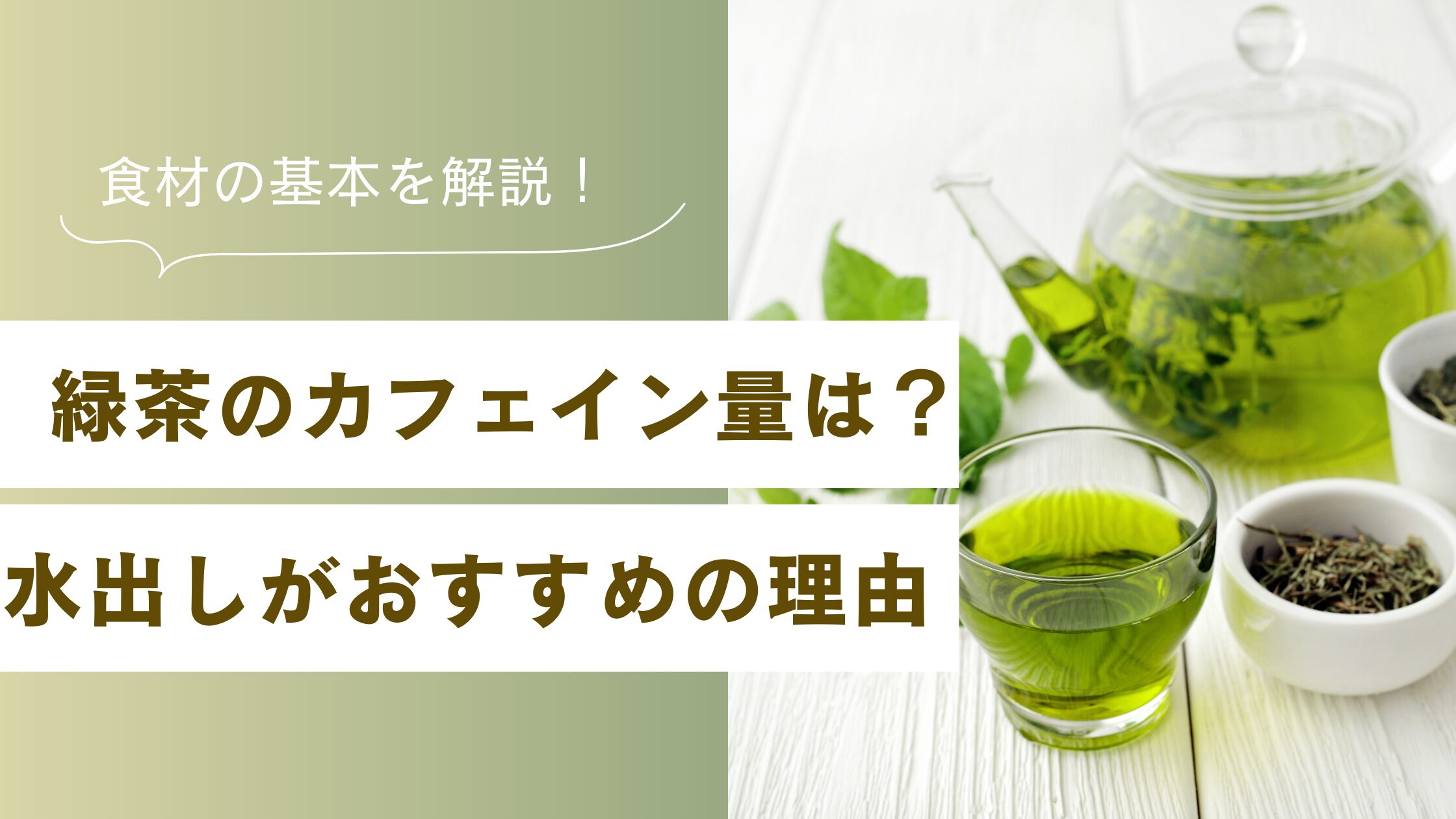 お茶・紅茶 緑茶のカフェイン量を抑えたいなら水出しがおすすめ|半分程度に抑えられる理由 緑茶のカフェイン量を抑えたい方に向けて、水出しがおすすめな理由を解説します。水出しにするとカフェイン量が半分程度に抑えられるとされる理由や、やさしい取り入れ方を紹介します。 2025.12.22 お茶・紅茶食材